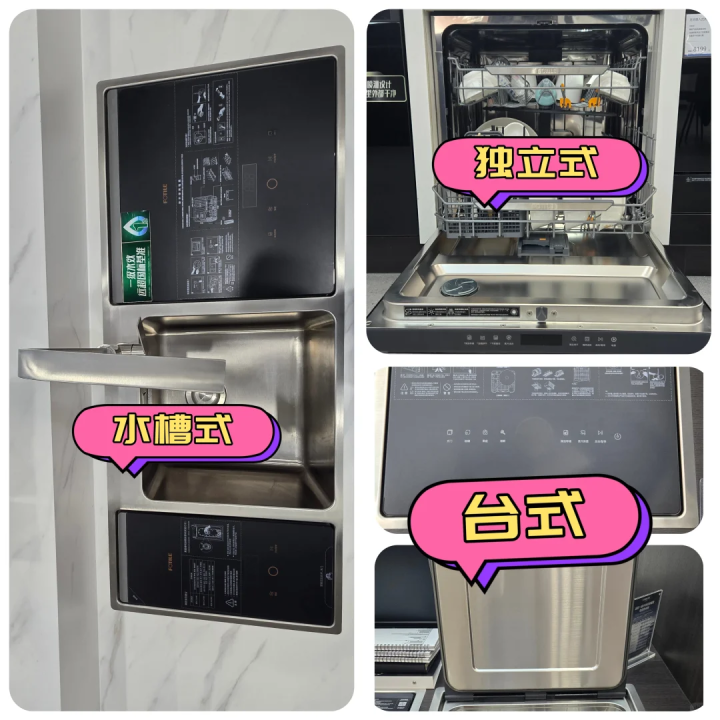 如今市面上的洗碗机分为台式、水槽式、嵌入式、独立式等。